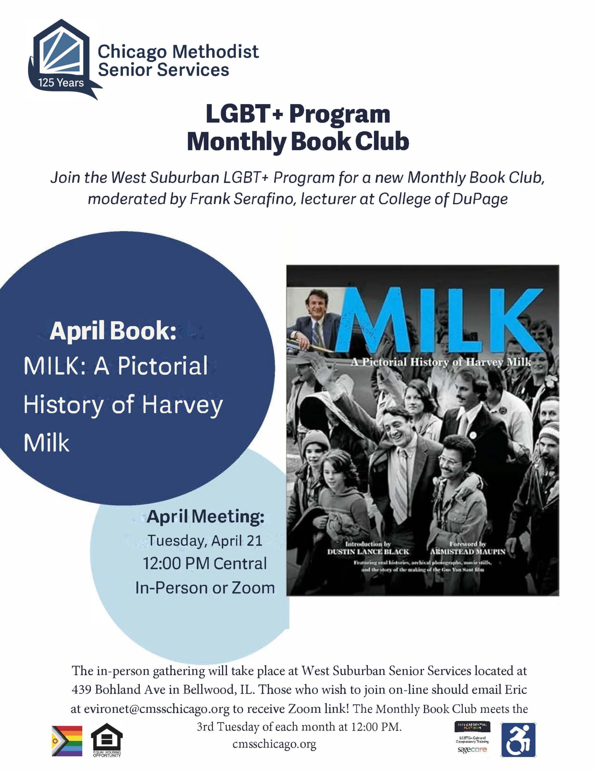 Join the West Suburban LGBT+ Program for a new Monthly Book Club, moderated by Frank Serafino, lecturer at College of DuPage. This is a HYRBID event with participants joining in-person and online.