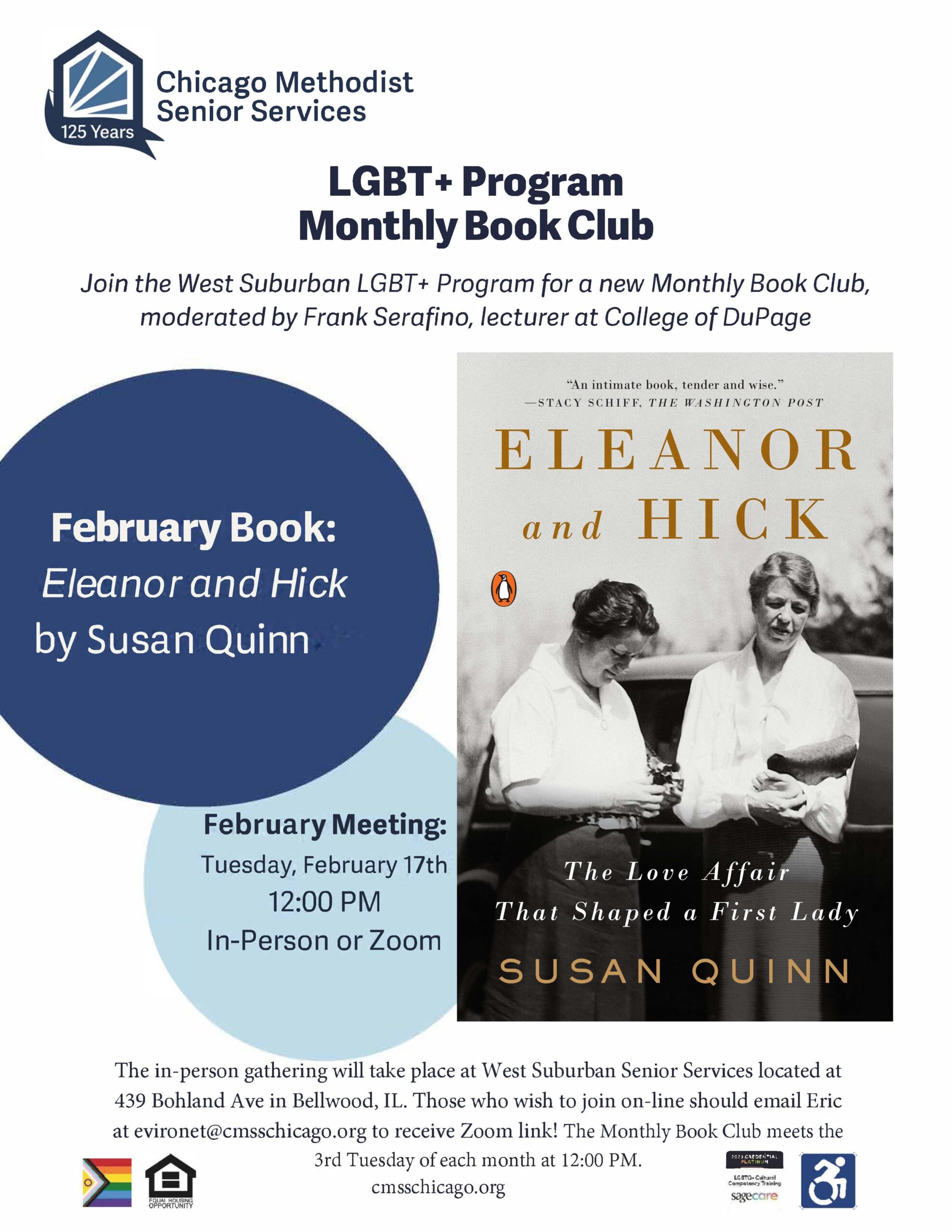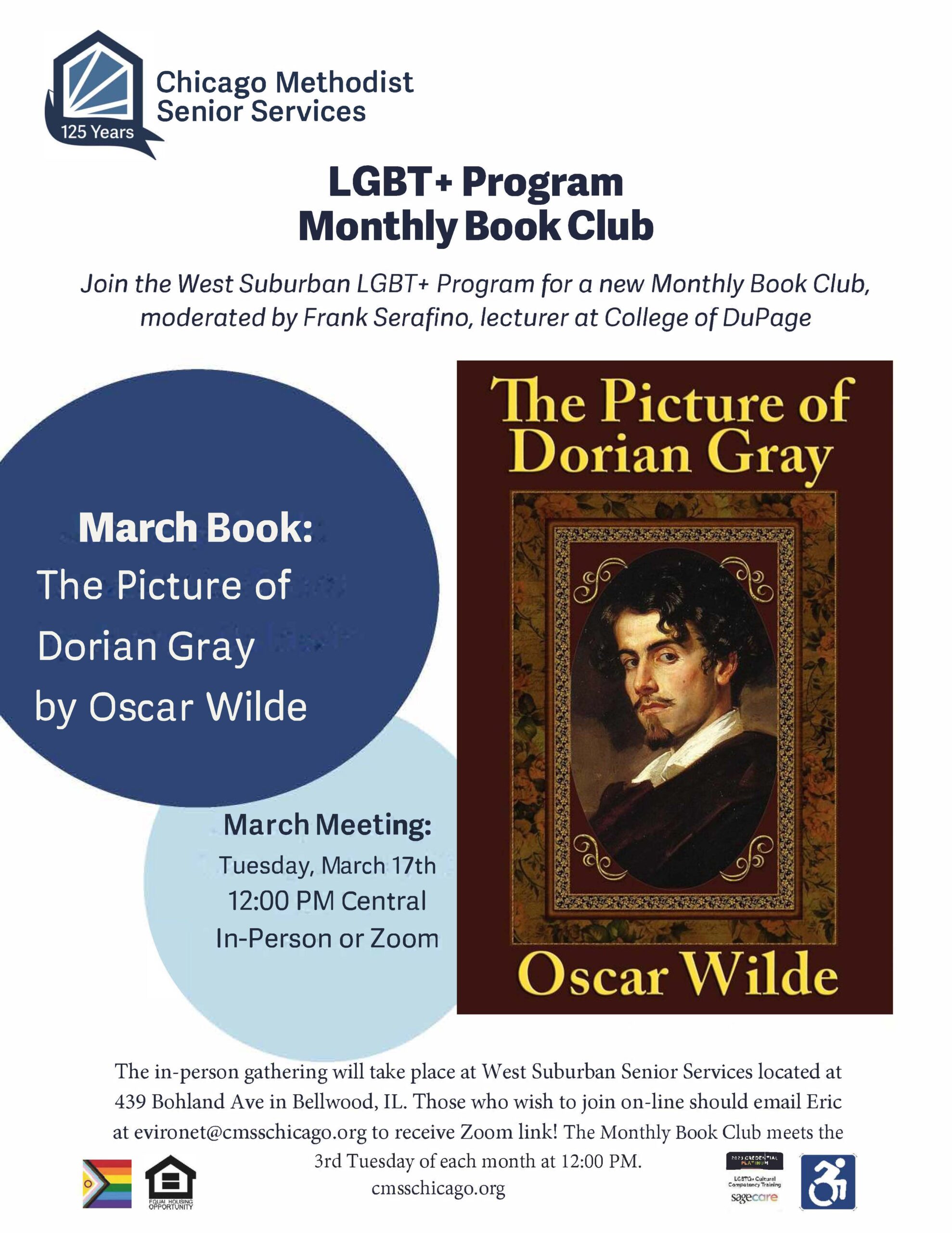 Join the West Suburban LGBT+ Program for a new Monthly Book Club, moderated by Frank Serafino, lecturer at College of DuPage. This is a HYRBID event with participants joining in-person and online.